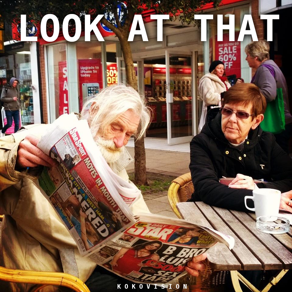 “omg did you see it?”, “have you seen it?”, “you have to see it”… rarely do words ever mean anything much. this is clearly the case here. does she even know the man? has he bought a drink or just sat down , grabbed her paper and said in a stupid irish accent “sure would you look at that”?